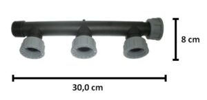 Il collettore in polietilene presenta tre uscite con ghiera da 1 pollice. Indispensabile nella realizzazione di impianti di irrigazione residenziale. Supporta una pressione di esercizio massima di 10 bar. Collegabile con tre elettrovalvole disposte alla giusta distanza all’interno o meno del pozzetto. Consigliabile, ma non necessario, l’utilizzo di teflon. Facile installazione senza l’utilizzo di attrezzi.