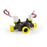 Collettore a croce 2 elettrovalvole – Solenoide 9 V/12 V con flusso regolabile